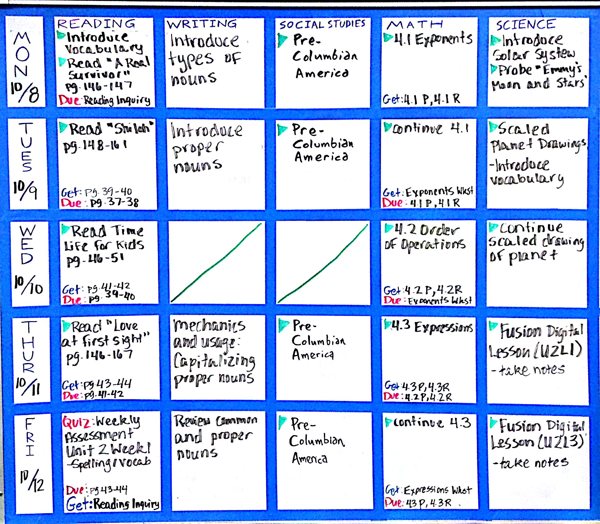 Week 1:8 (Oct.8-12) October 5, 2012 by Mrs. Benton Share this: Click to share on X (Opens in new window) X Click to share on Facebook (Opens in new window) Facebook Like Loading...