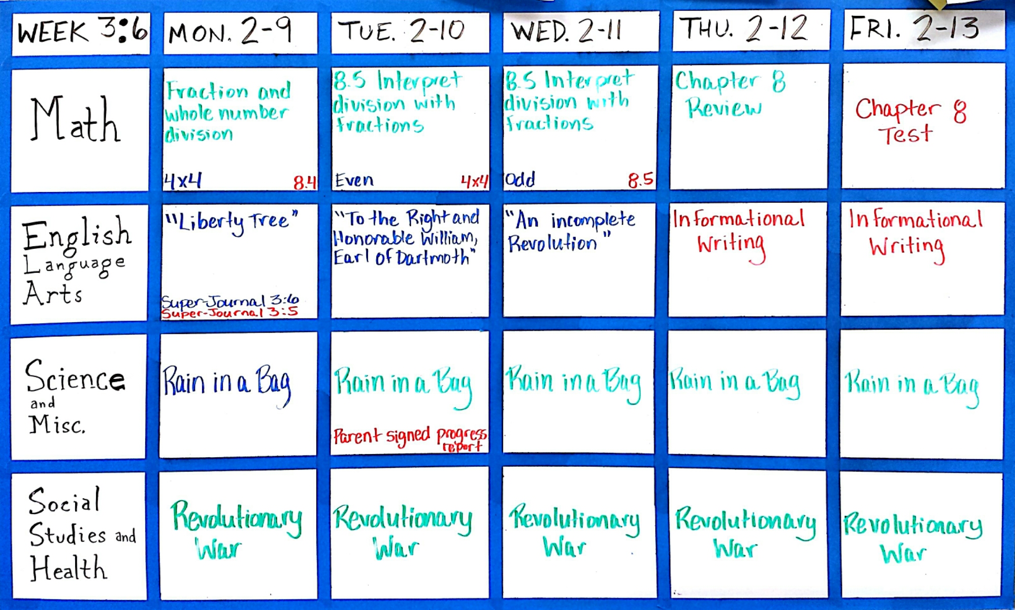 Week 3:6(Feb.9-13) February 6, 2015 by Mrs. Benton Share this: Click to share on X (Opens in new window) X Click to share on Facebook (Opens in new window) Facebook Like Loading...