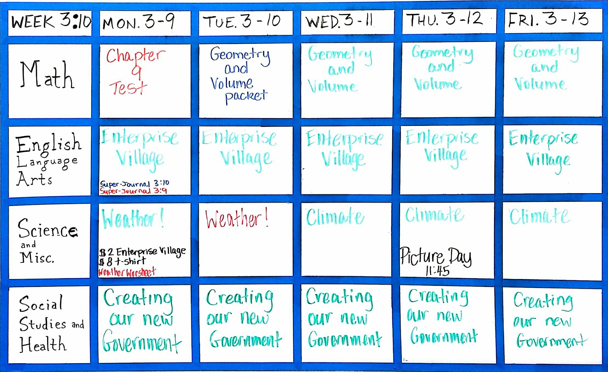 Week 3:10 (Mar. 9-13) March 6, 2015 by Mrs. Benton Share this: Click to share on X (Opens in new window) X Click to share on Facebook (Opens in new window) Facebook Like Loading...