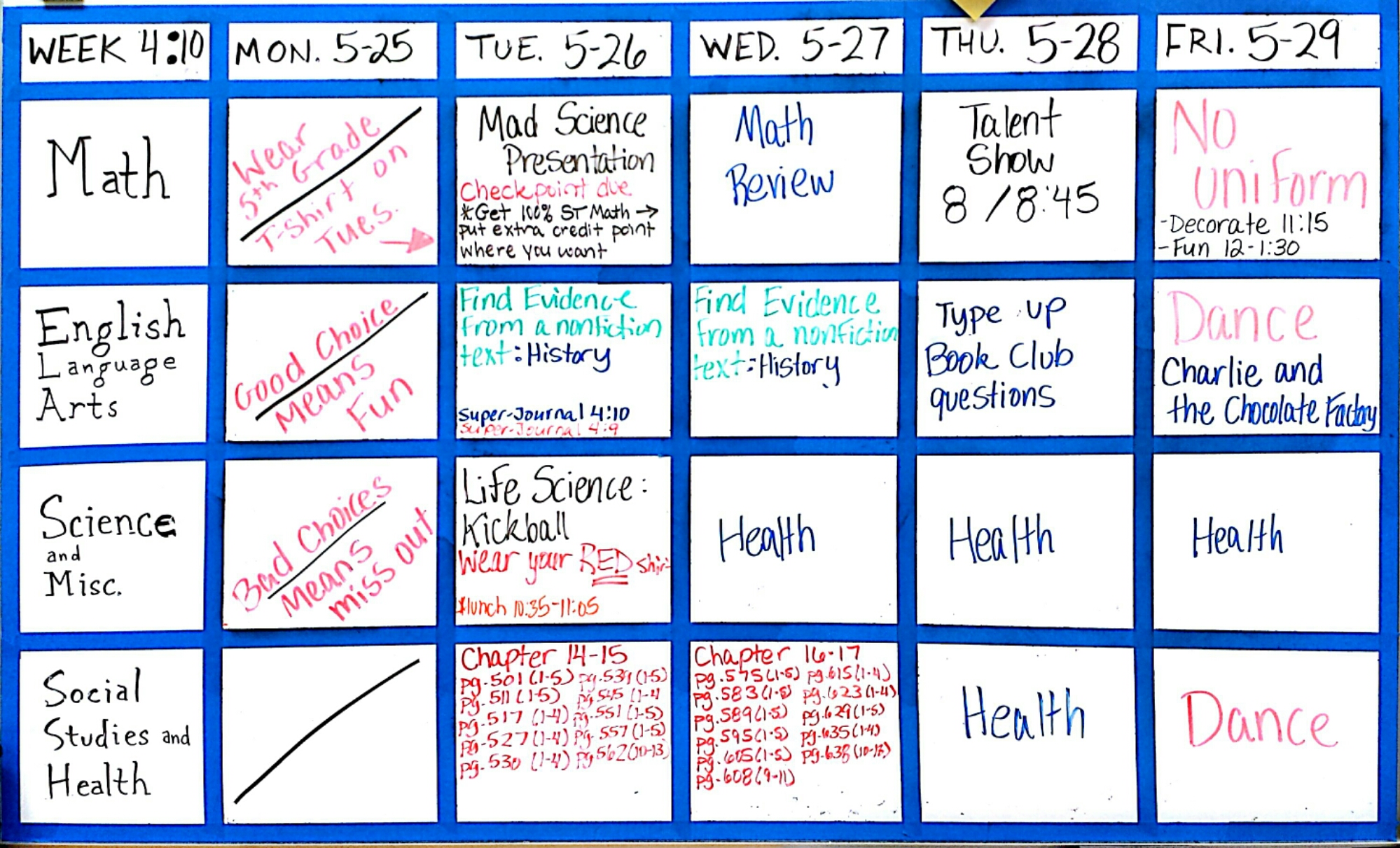 Week 4:10 (May 26-29) May 21, 2015 by Mrs. Benton Share this: Click to share on X (Opens in new window) X Click to share on Facebook (Opens in new window) Facebook Like Loading...