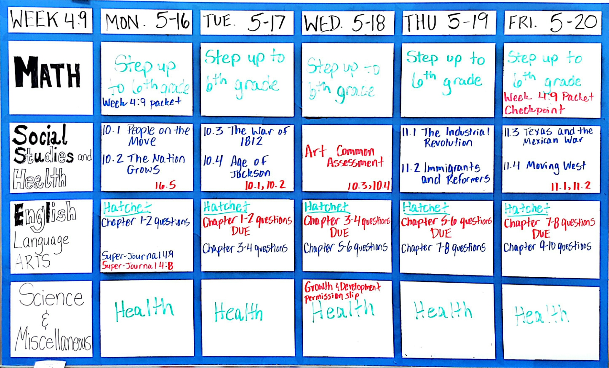 Week 4:9 (May 16-20) May 13, 2016 by Mrs. Benton Share this: Click to share on X (Opens in new window) X Click to share on Facebook (Opens in new window) Facebook Like Loading...