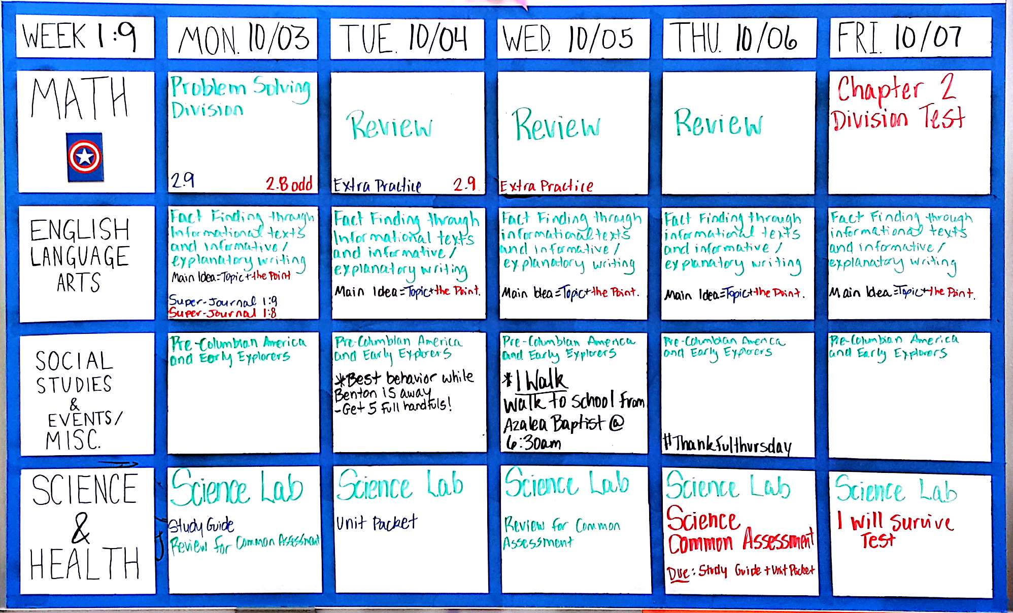 Week 1:9 (Oct.3-7) September 30, 2016 by Mrs. Benton Share this: Click to share on X (Opens in new window) X Click to share on Facebook (Opens in new window) Facebook Like Loading...