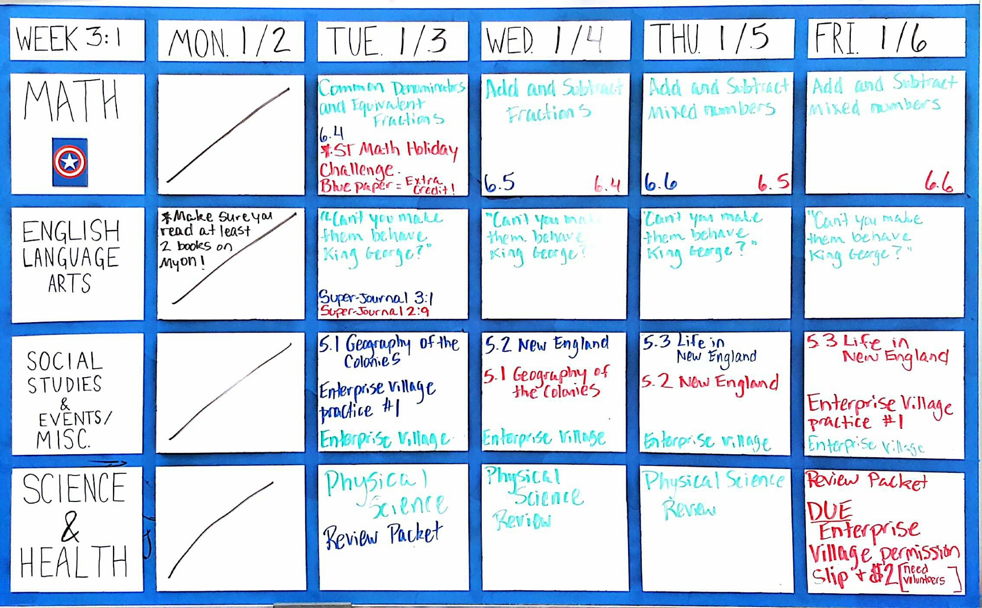 Week 3:1 ( Jan.3-6) December 16, 2016 by Mrs. Benton Share this: Click to share on X (Opens in new window) X Click to share on Facebook (Opens in new window) Facebook Like Loading...