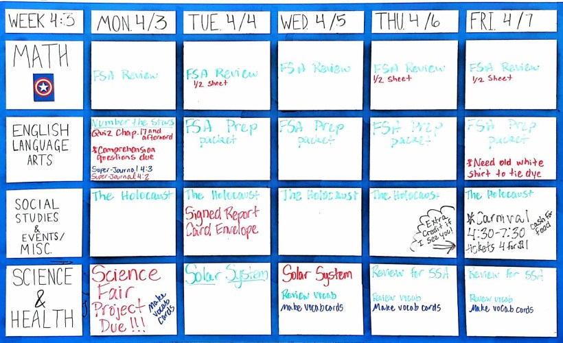 Week 4:3 (Apr.3-7) March 31, 2017 by Mrs. Benton Share this: Click to share on X (Opens in new window) X Click to share on Facebook (Opens in new window) Facebook Like Loading...