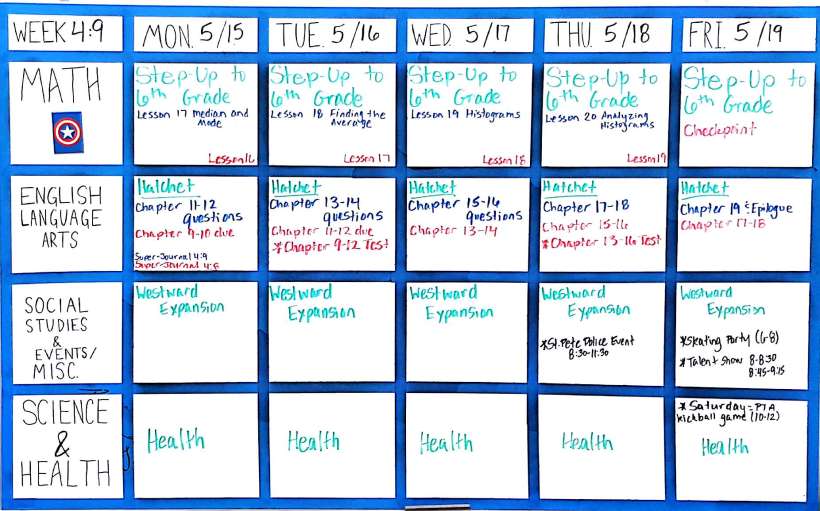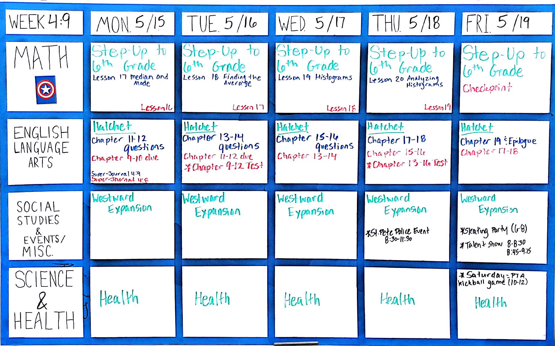 Week 4:9 (May 15-19) May 12, 2017 by Mrs. Benton Share this: Click to share on X (Opens in new window) X Click to share on Facebook (Opens in new window) Facebook Like Loading...
