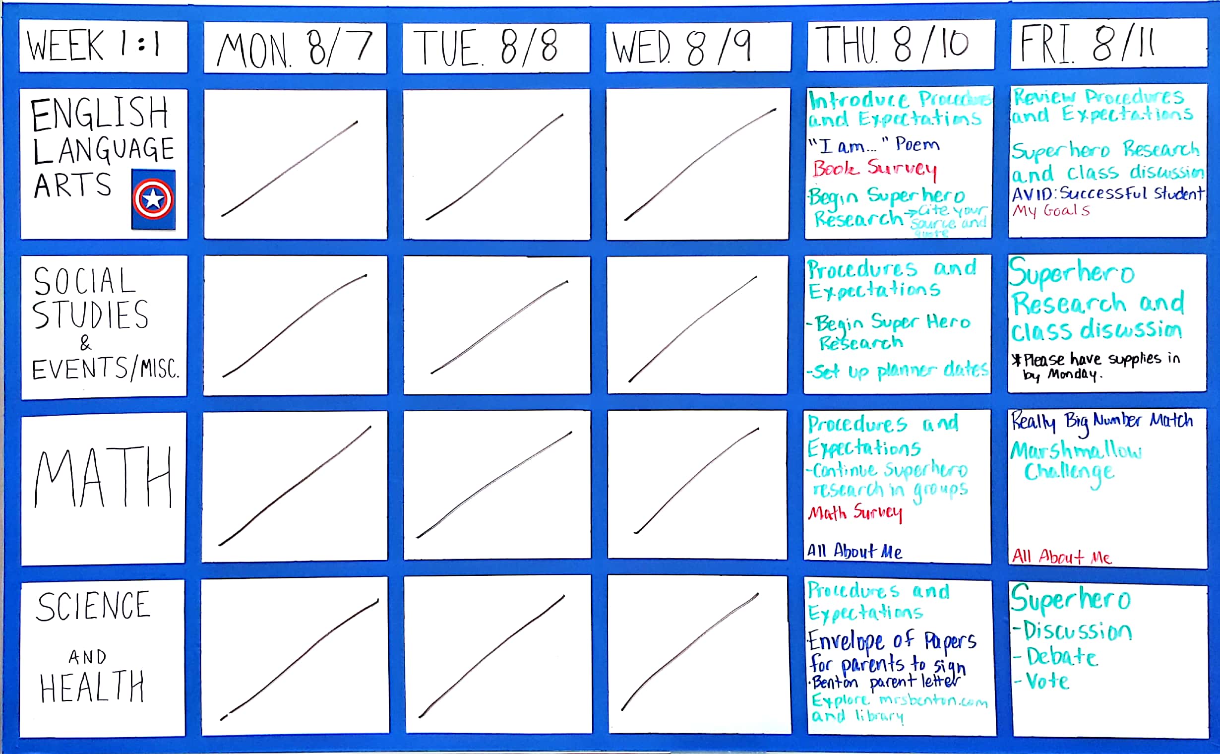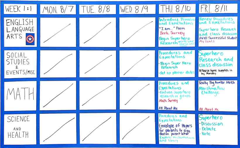 - GREEN items are in-class activities such as groupwork, lectures, and lessons.