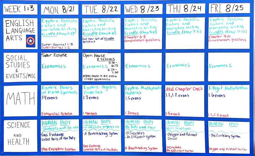 Most of our work is done collaboratively in class. Even if an assignment is completed during the day, students are to keep it until the due date.