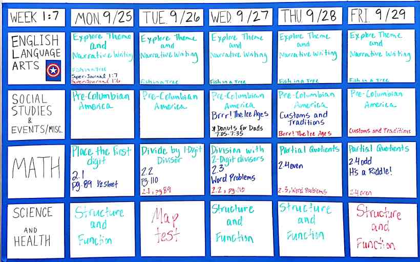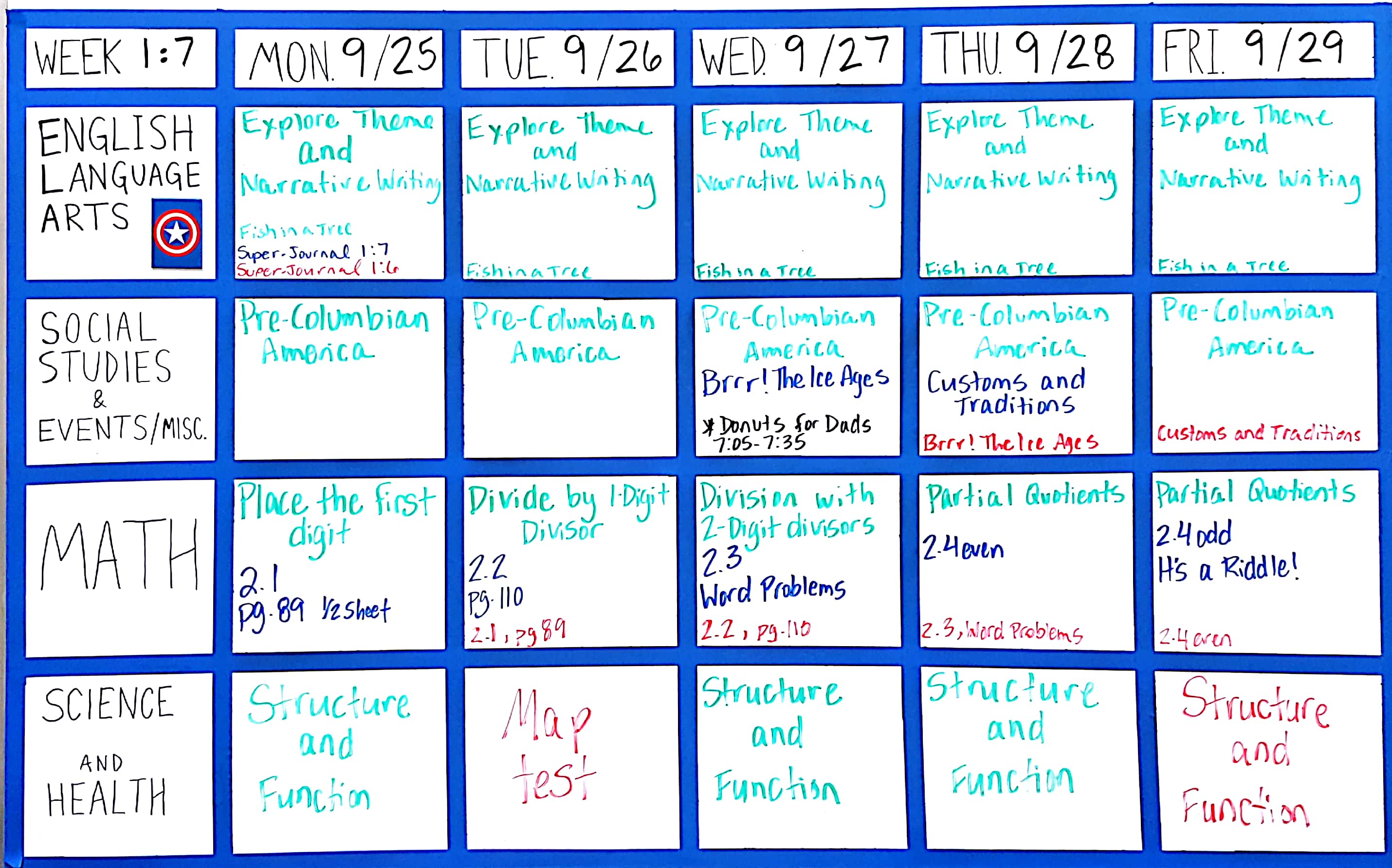 Week 1:7 (Sep.25-29) September 22, 2017 by Mrs. Benton Agenda filled out over the weekend=prize Monday morning Share this: Click to share on X (Opens in new window) X Click to share on Facebook (Opens in new window) Facebook Like Loading...