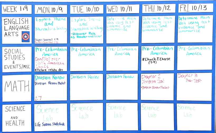 Week 1:9 (Oct.9-13) October 6, 2017 by Mrs. Benton Remember to have your agenda filled out for Monday!!! Share this: Click to share on X (Opens in new window) X Click to share on Facebook (Opens in new window) Facebook Like Loading...