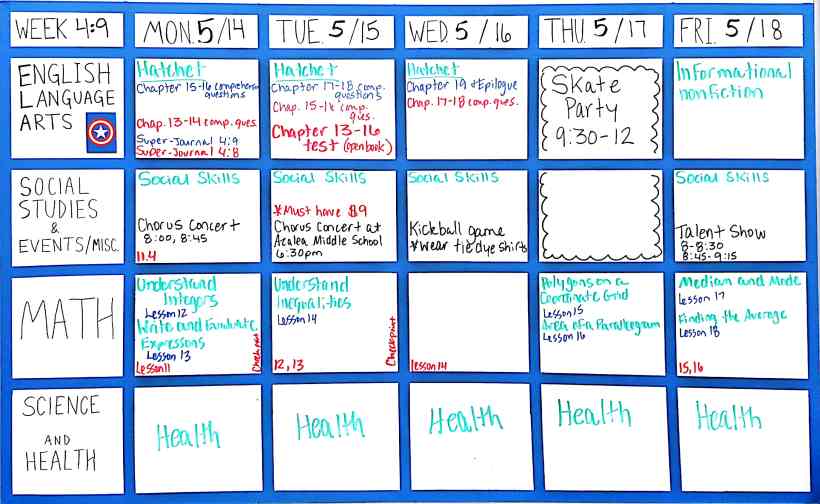 Week 4:9 (May 14-18) May 11, 2018 by Mrs. Benton Share this: Share on X (Opens in new window) X Share on Facebook (Opens in new window) Facebook Like Loading...