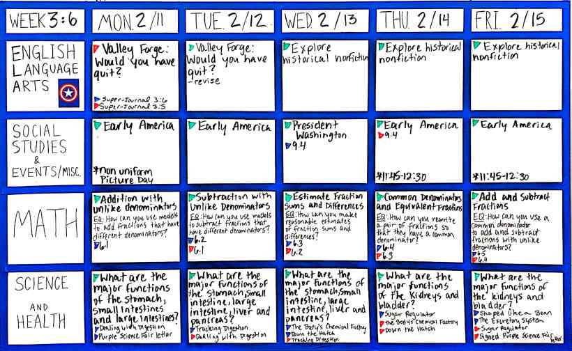 Week 3:6 (Feb.11-15) February 8, 2019 by Mrs. Benton *Valentine’s treats would be welcome on Thursday. There are 20 students. Share this: Click to share on X (Opens in new window) X Click to share on Facebook (Opens in new window) Facebook Like Loading...