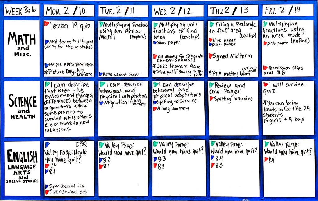 Week 3:6 (Feb.10-14) February 7, 2020 by Mrs. Benton *filled out planner over the weekend=EXTRA CREDIT Share this: Click to share on X (Opens in new window) X Click to share on Facebook (Opens in new window) Facebook Like Loading...