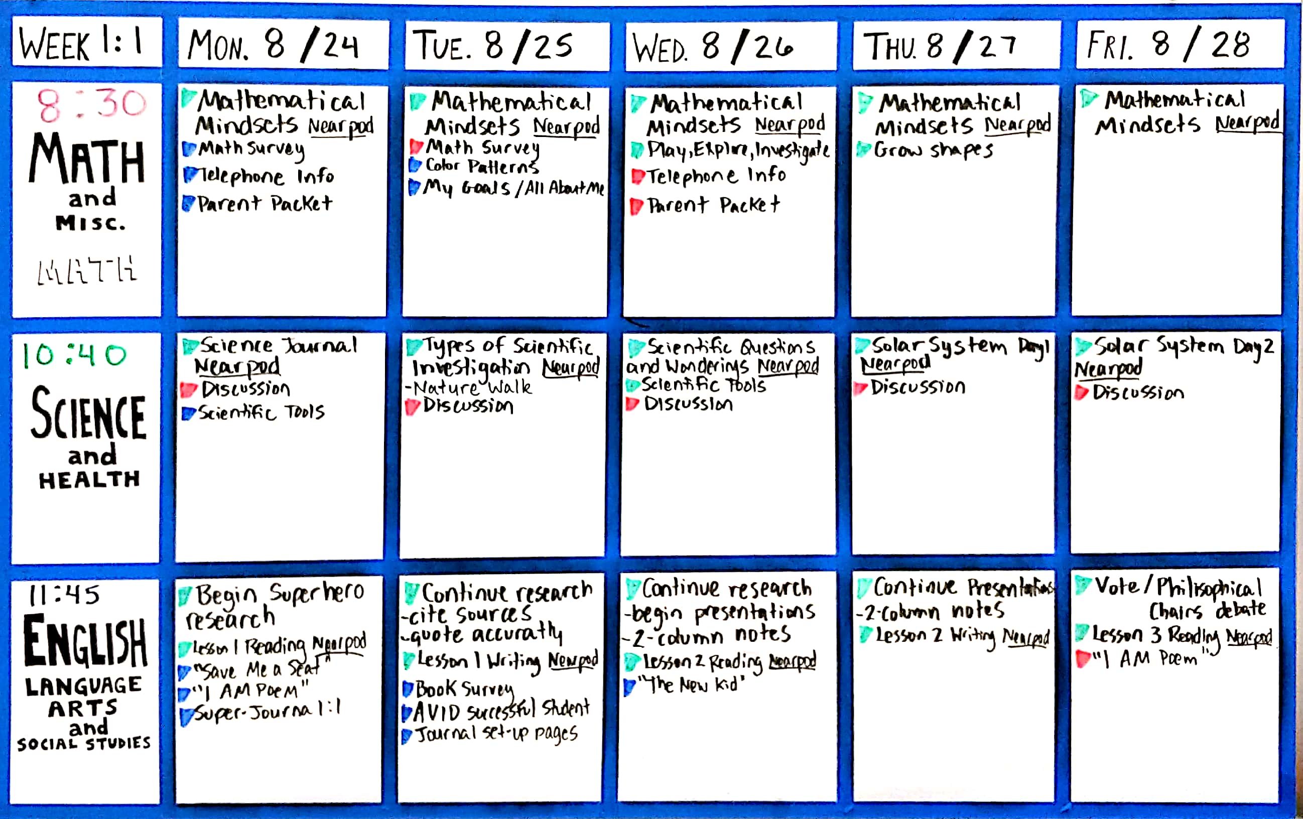 • GREEN items are in-class activities such as groupwork, lectures, and lessons.