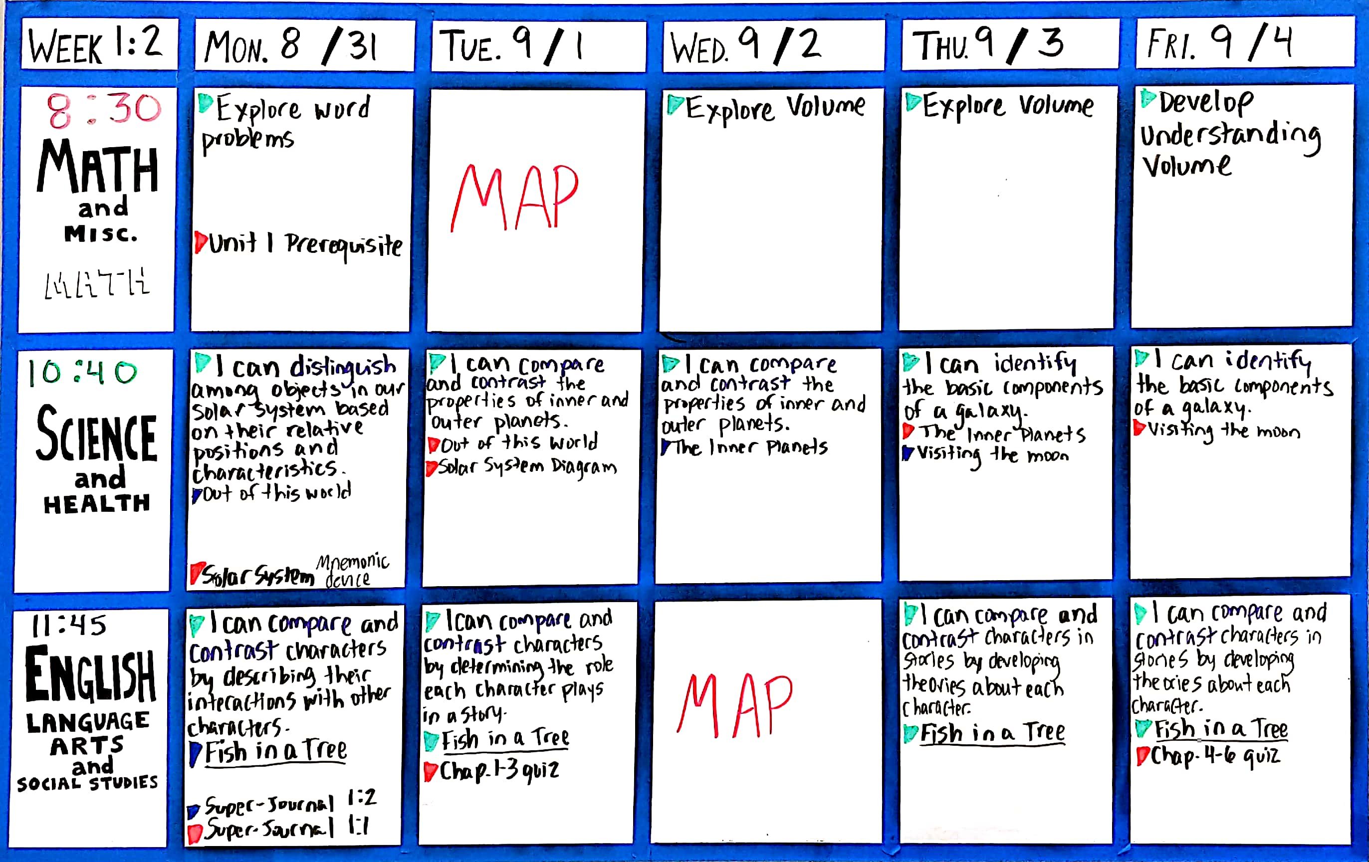 Week 1:2 (Aug.31-Sep.4) August 28, 2020 by Mrs. Benton Copy this schedule into your agenda and bring back your Super-Journal question. Super-Journal 1:2 Share this: Click to share on X (Opens in new window) X Click to share on Facebook (Opens in new window) Facebook Like Loading...