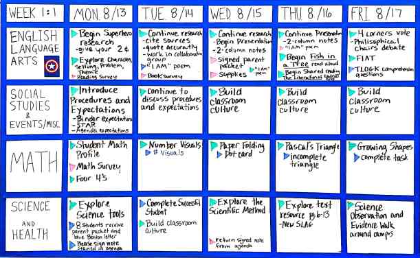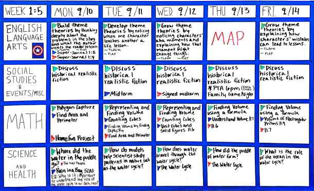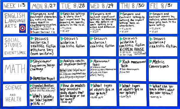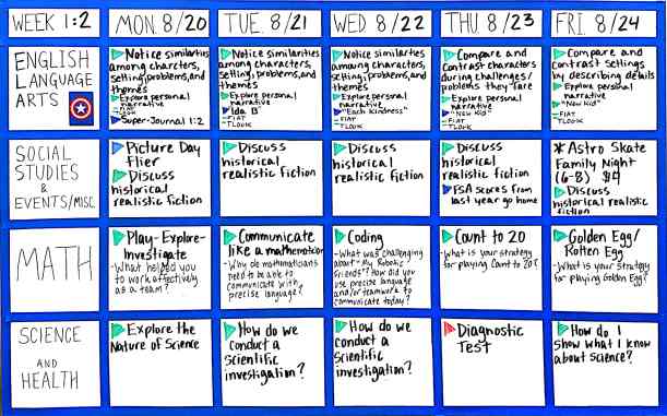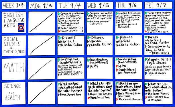 - GREEN items are in-class activities such as groupwork, lectures, and lessons.