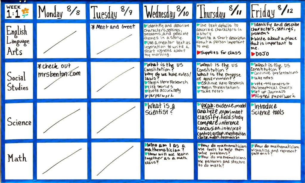 BLUE items on the agenda indicate a handout being physically distributed in class. GREEN items are in-class activities such as groupwork, lectures, and lessons. RED items indicate an assignment due date or assessment.