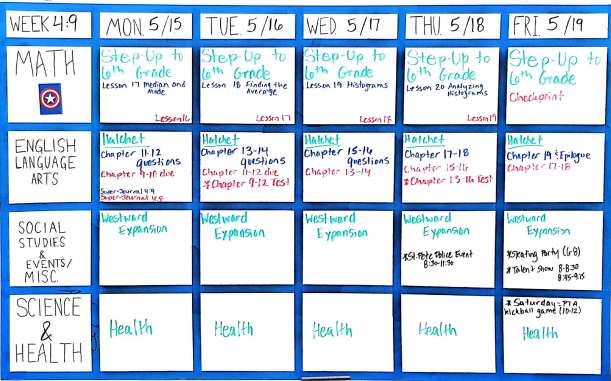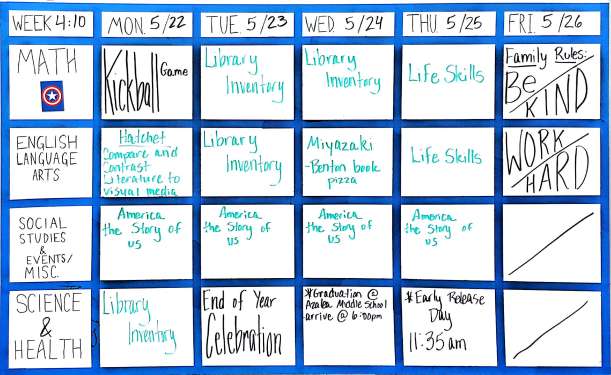 • GREEN items are in-class activities such as groupwork, lectures, and lessons.