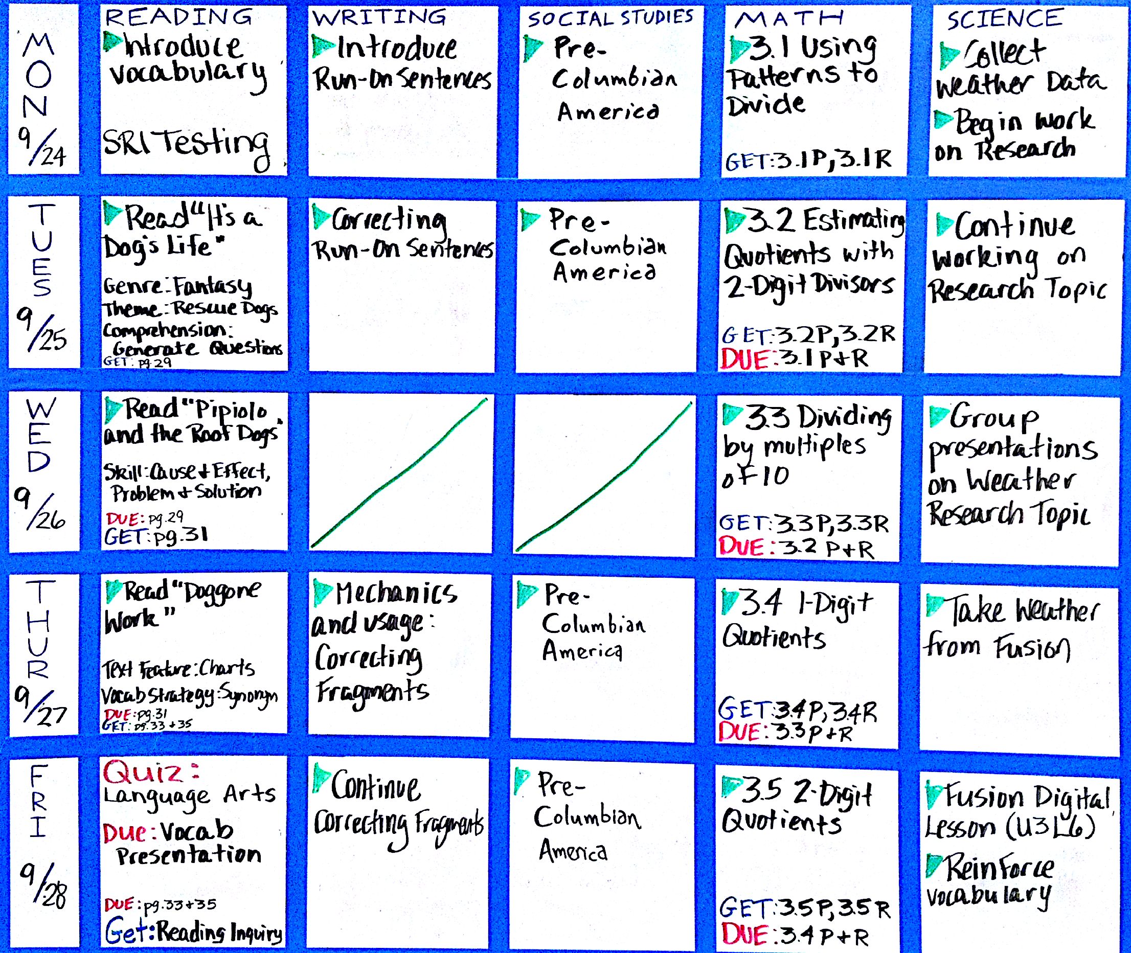 - 24 #2 pencils (per marking period)