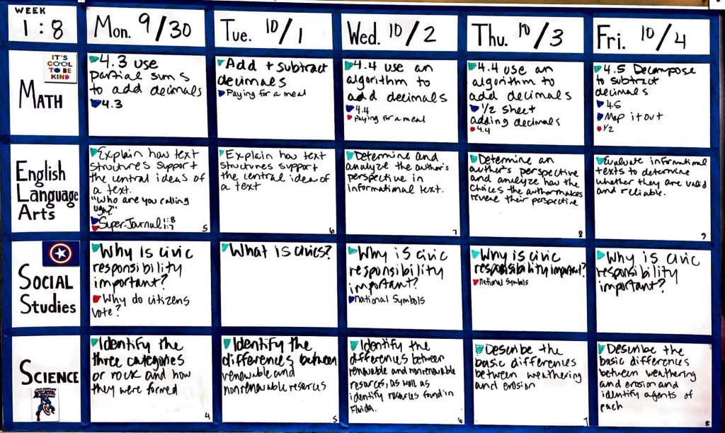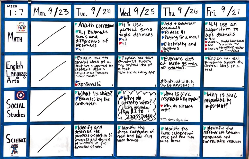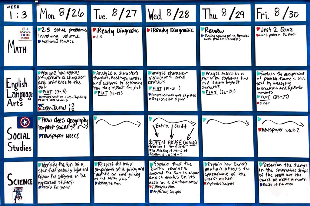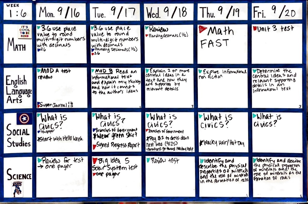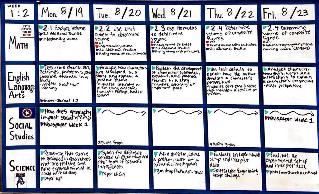 - GREEN items are in-class activities such as groupwork, lectures, and lessons.