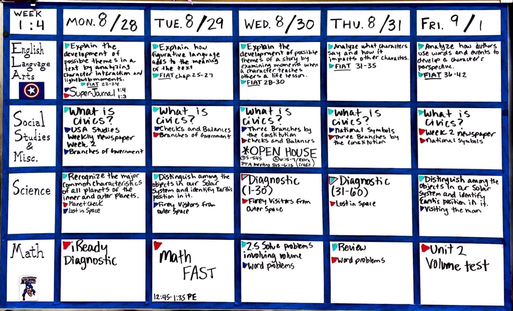 Please copy down the agenda over the weekend for a sticker! Blue means you got a paper, Red means when it is due.